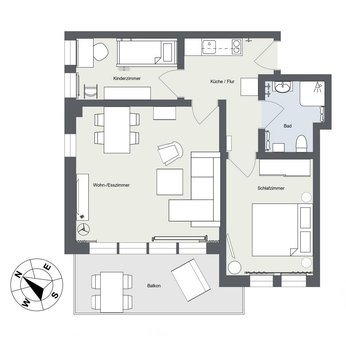 Der 10 m² große Balkon in S/W-Lage lädt morgens zum Frühstück oder in der Abendsonne auf ein Gläschen Wein ein.
